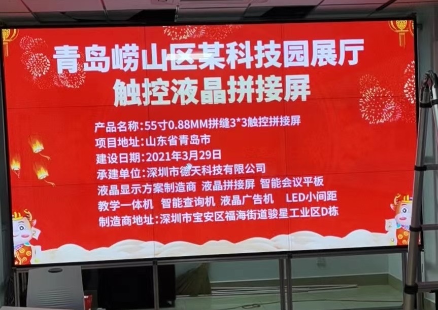 青島嶗山區某科技園展廳觸控液晶拼接屏項目
